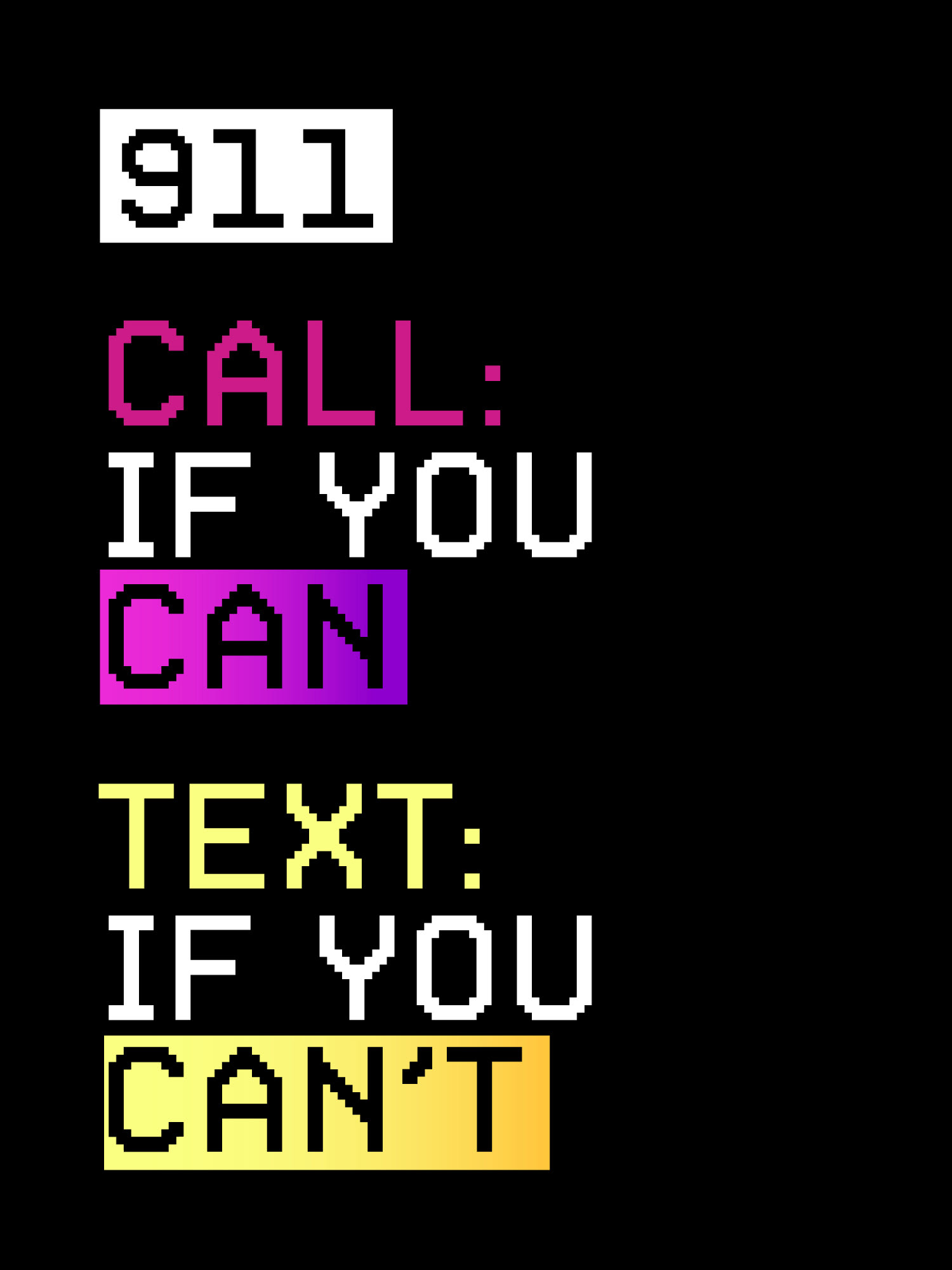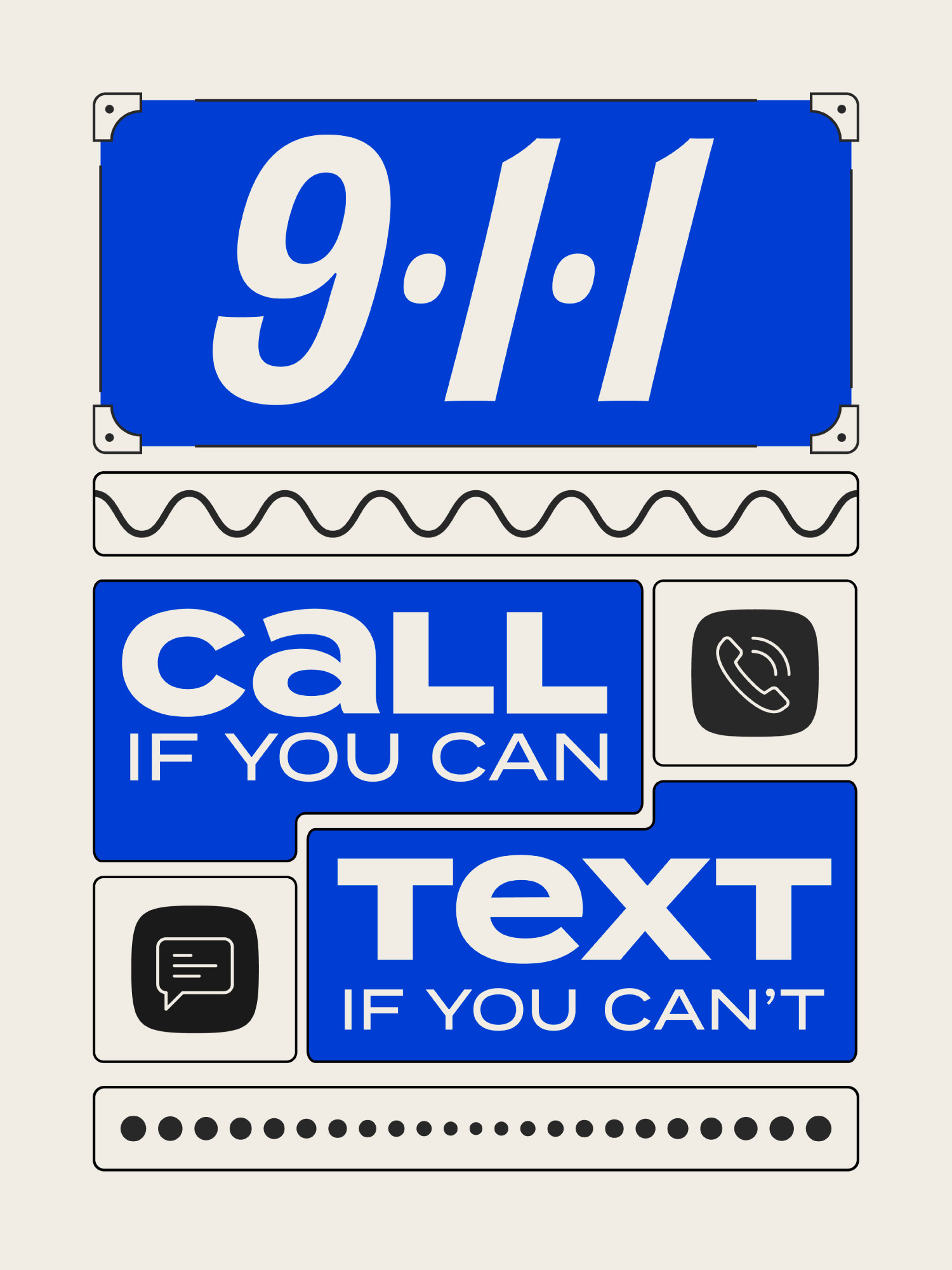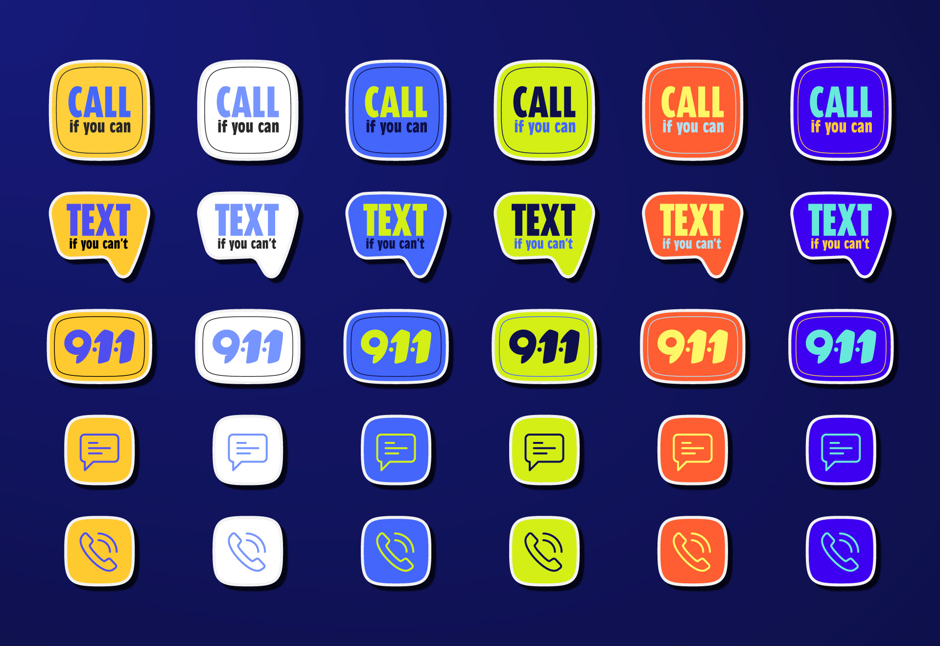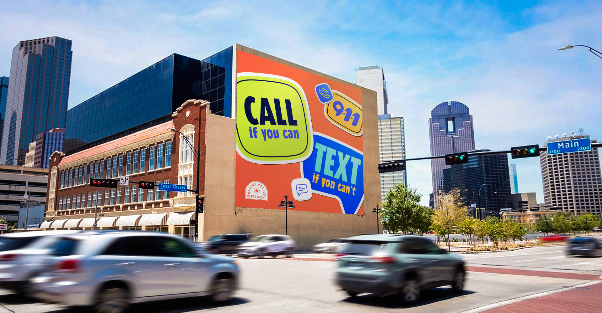 The Dallas Police Department partnered with DHD Films to develop branding for their “Call If You Can, Text If You Can’t” campaign, aimed at raising awareness around texting 911 during emergencies. With creative freedom, the team explored visually engaging approaches designed to resonate with a younger audience. Building on a concept from the art director, I designed the final direction: a sticker-collage visual system inspired by everyday iconography and universal symbols. The result was an approachable, attention-grabbing identity suitable for broad public use.